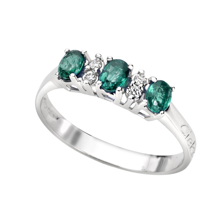 Anello trilogy da donna Cierre della collezione Colore realizzato in oro bianco 18kt 750% con smeraldo impreziosito da diamanti taglio brillante.