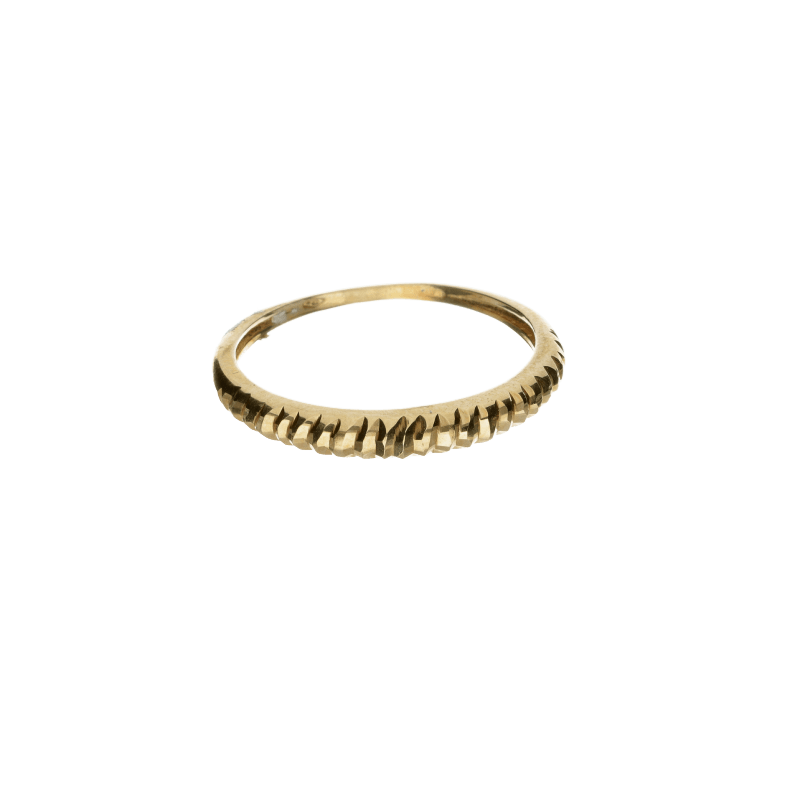Anello da donna realizzato in oro giallo 18kt 750% impreziosito da una lavorazione diamantata.