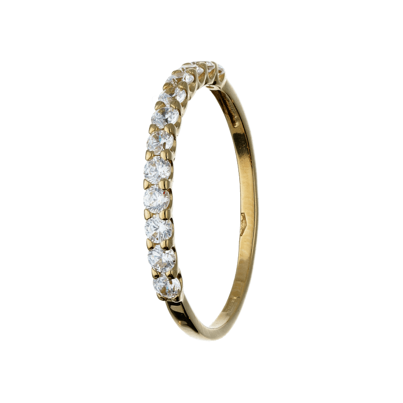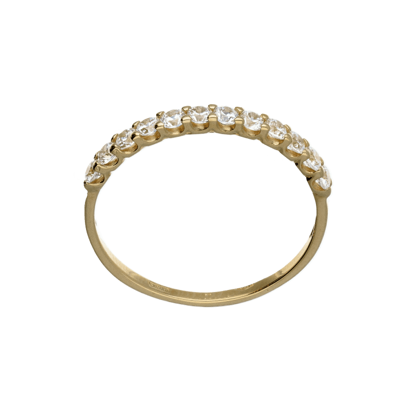 Anello da donna, modello veretta, realizzato in oro giallo 18kt 750% impreziosito da zirconi bianchi.