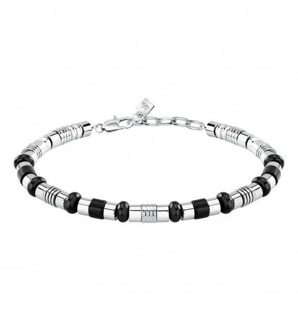 Bracciale da uomo Morellato della collezione Pietre realizzato in acciaio anallergico e passanti in onice nera.