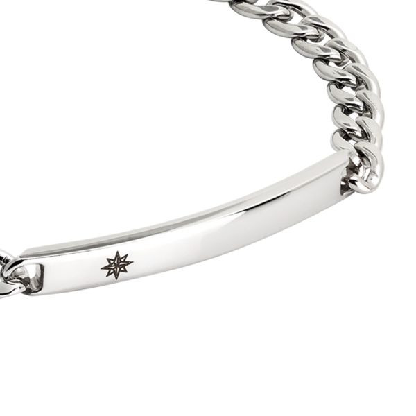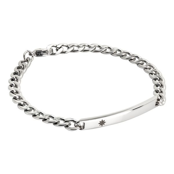 Bracciale da uomo Boccadamo della collezione Man rodiato a catena in maglia grumetta e piastrina centrale con simbolo della rosa dei venti laserato.