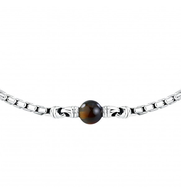 Bracciale da uomo Morellato della collezione Pietre realizzato in acciaio anallergico con sfera in occhio di tigre centrale.