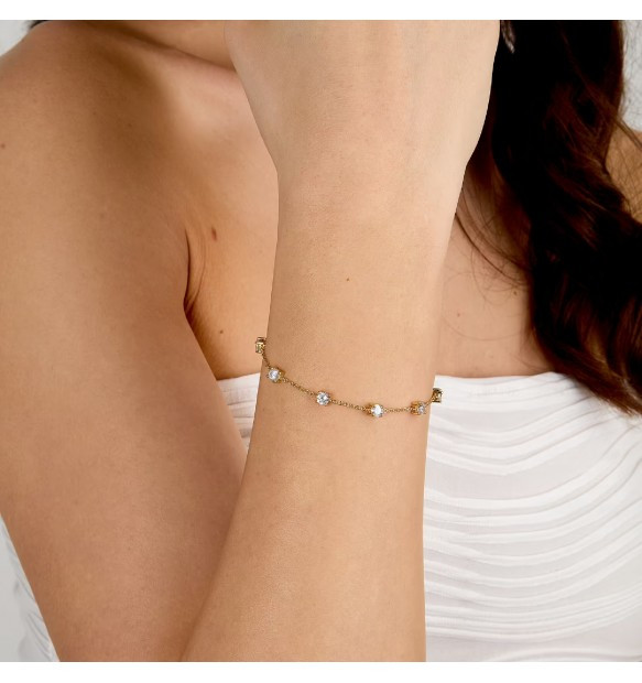 Bracciale da donna Morellato della collezione Tesori realizzato in argento 925% con finitura dorata con cristalli bianchi.