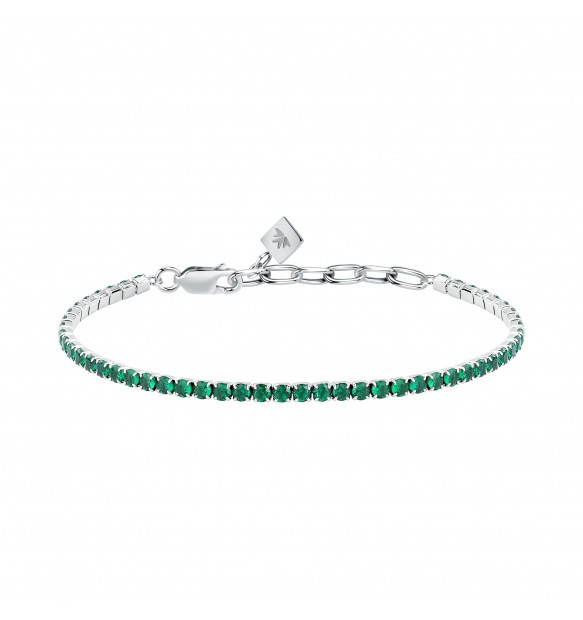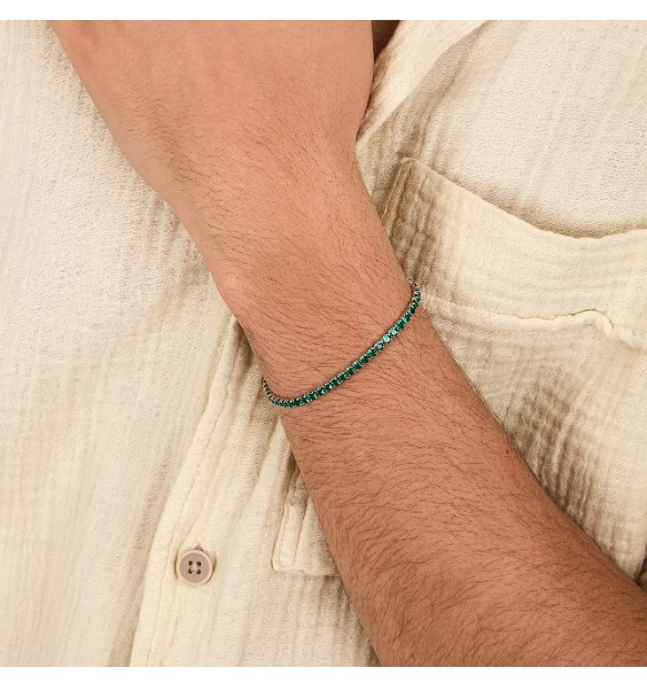 Bracciale tennis da uomo Morellato della collezione Tennis di zirconi verdi realizzato in argento 925%. Lunghezza di 18 cm + 3,5 cm; chiusura a moschettone.