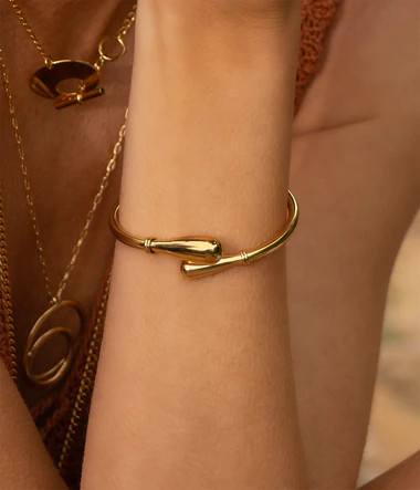 Bracciale bangle liscio da donna Zag Bijoux dlla collezione Olaline realizzato in acciaio liscio o placcato oro. Due forme arrotondate si intersecano sulla parte superiore.