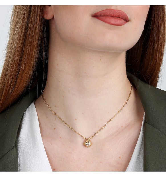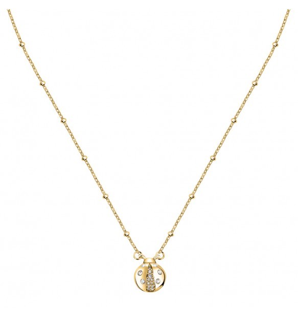 Collana da donna Morellato della collezione Istanti realizzata in acciaio anallergico con finitura dorata con pendente a forma di coccinella impreziosita da zirconi bianchi.