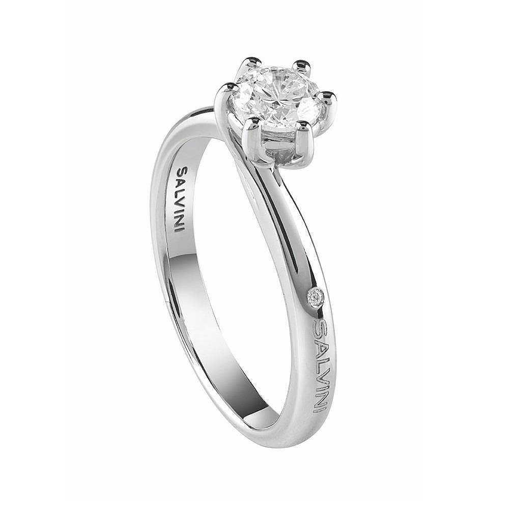 Anello solitario da donna Salvini della collezione Lavinia.Questo gioiello è realizzato in oro bianco 750/1000, 18 kt. impreziosito da un diamante colore G, purezza SI.