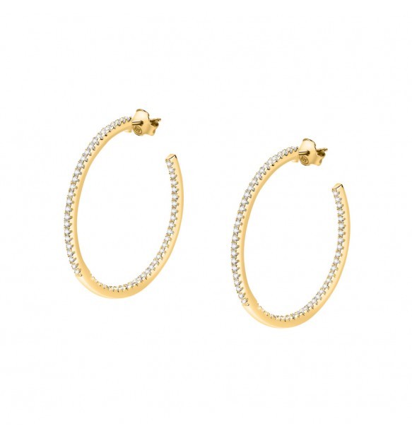 Orecchini a cerchio da donna Morellato della collezione Tesori realizzati in argento 925% dorato con pave' di cristalli bianchi.