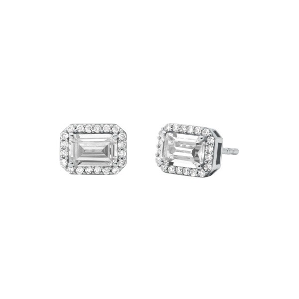 Orecchini a lobo da donna Michael Kors della collezione Premium realizzati in argento 925% di forma rettangolare impreziositi da zirconi bianchi. Chiusura a farfallina