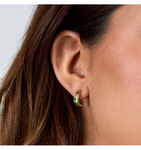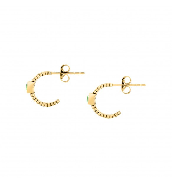 Orecchini da donna Morellato della collezione Gioia realizzati con catena a maglia piatta in acciaio anallergico con finitura dorata e cristalli verdi. Chiusura a farfallina.