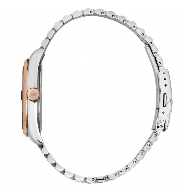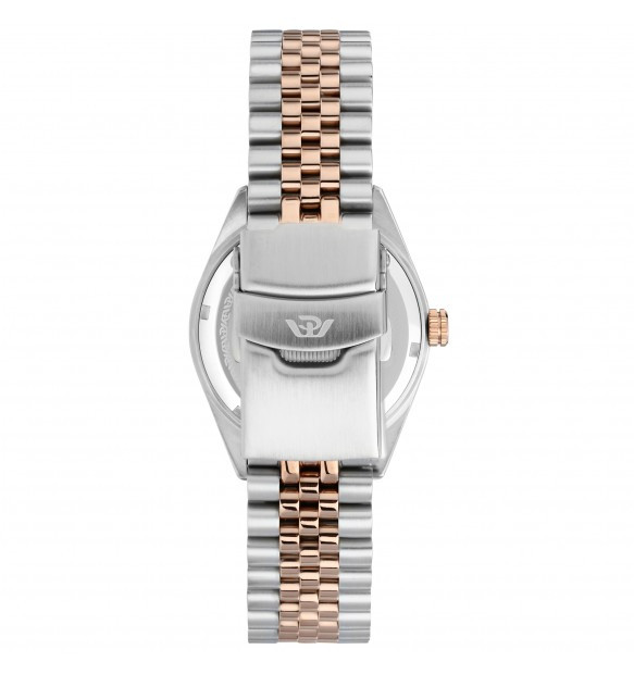 • Cinturino jubilee bicolore in acciaio anallergico silver e rose gold; chiusura deployante con pulsanti.